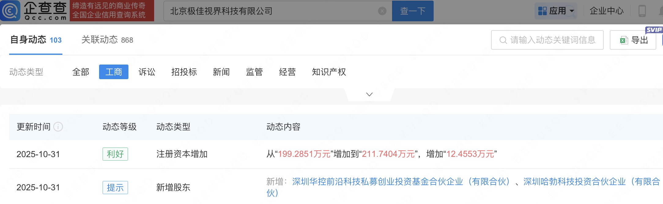 近日,北京极佳视界科技有限公司发生工商变更,新增华为旗下深圳哈勃科技投资合伙企业(有限合伙)等为股东,同时注册资本由约199.3万人民币增至约211.7万人民币。企查查信息显示线上股票配资软件,该公司成立于2023年,法定代表人为黄冠,经营范围包括人工智能应用软件开发、人工智能基础软件开发、人工智能行业应用系统集成服务等。据其官网,该公司是一家专注于视频生成和世界模型技术的空间智能公司。