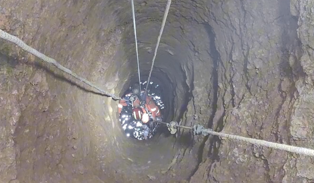 1月24日12时23分,河南洛阳市孟津区河图街道,一名8岁女孩在玩耍时不慎掉入水井里面,从井口到水面的深度约为25米,井水水位至被困女孩肩膀处,救援人员合力成功将被困女孩救出。